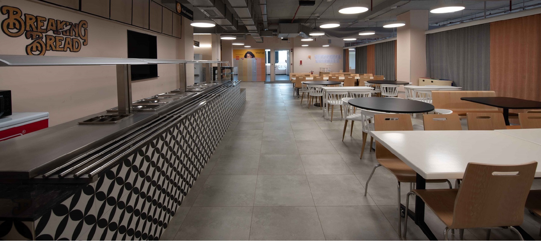 At the heart of this hub are two double-height areas that we designed as community spaces, connecting two floors through an internal staircase. This space is the signature design element of the hub.