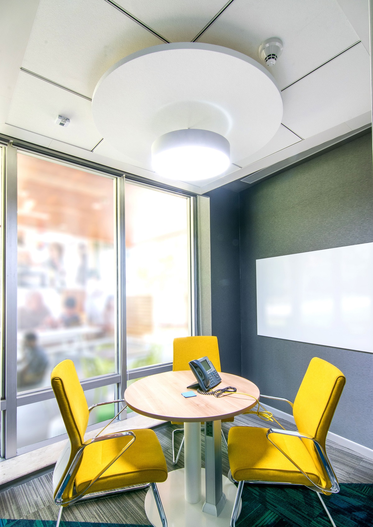 For this project, we came up with the novel idea of having a café on the ground floor, right by the reception area and outside the interview zones. This way, we created a window of perception that would allow prospective employees to gauge a sense of campus activity and buzz while seated in the interview room.