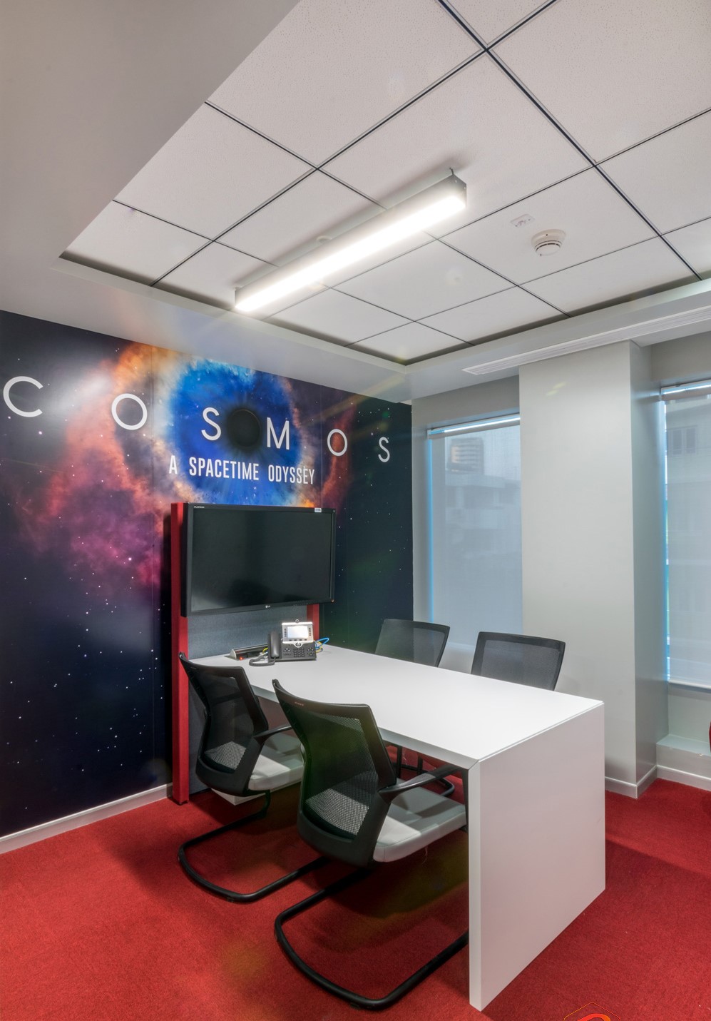Taking customisation further, the colour scheme was modelled on the seven SMPTE colour bars of the television test pattern. Meeting rooms bore visuals of knowledge-based shows, and other collaborative spaces that of entertainment shows and icons. Each floor had two pantries, the design, look and feel of which were again modelled on popular food & lifestyle shows and movies.