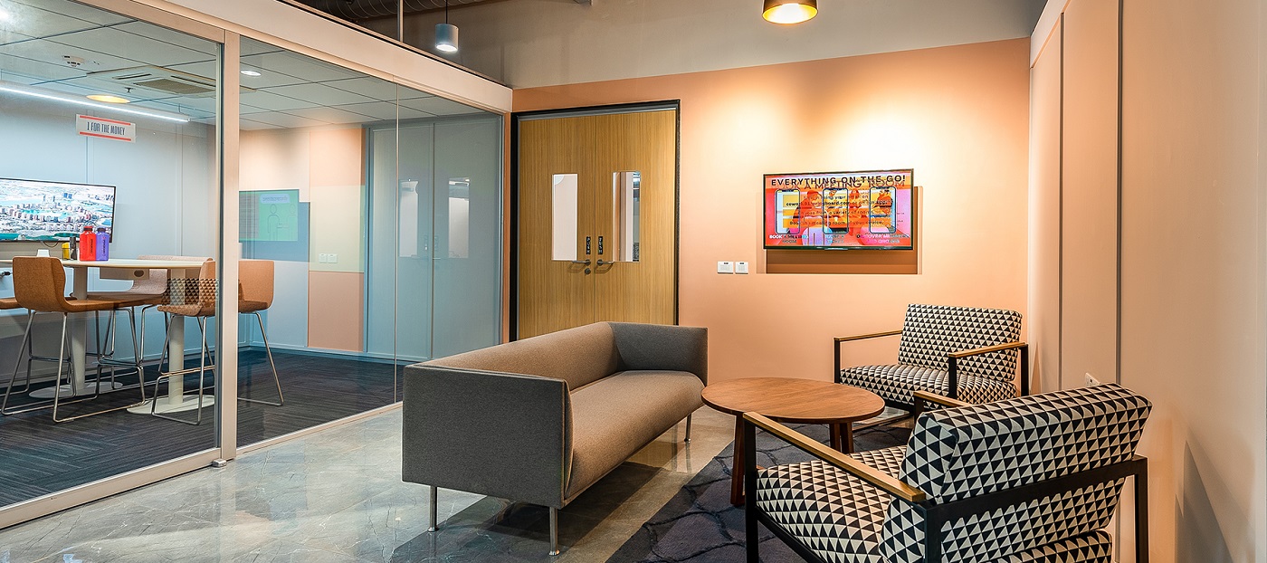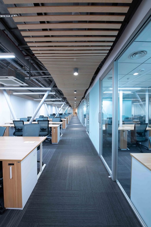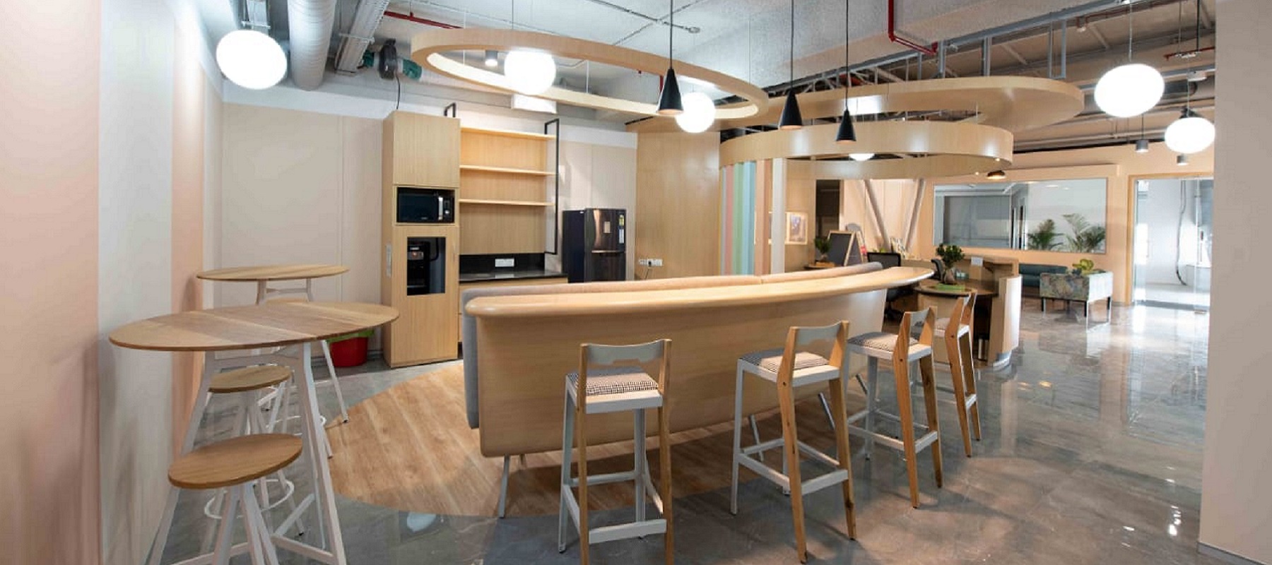 Open spaces for spontaneous encounters are vibrant, designed by employing warm materials, energising colours and ergonomically-designed furniture configurations that enable innovation and collaboration.