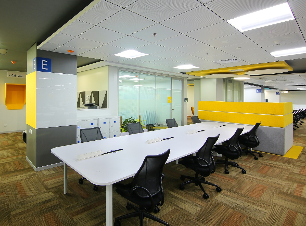 Increasing the people density on the floor puts pressure on the engineering – the need for more lighting and ACs for instance. We addressed this through clever interior design and strategic furniture placement. The collaborative furniture was designed to visually break the floor into smaller teams, without the use of space-consuming partitions. And then, with open workstations, lockers for all, and easy access to collaboration zones; we turned this into a highly-functional space that addresses the unique needs of varied teams.